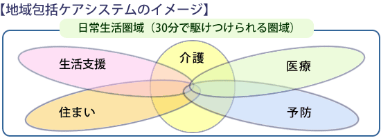 コールがあれば、30分以内に駆けつけられるエリアを範囲として「日常生活圏域」を設定し、地域包括支援センター(ブランチを含む。)を整備し、在宅サービスの充実を図ることで、特別養護老人ホーム等の介護施設に入所しないで、地域で暮らし続ける仕組みを作ろうとする試みです。